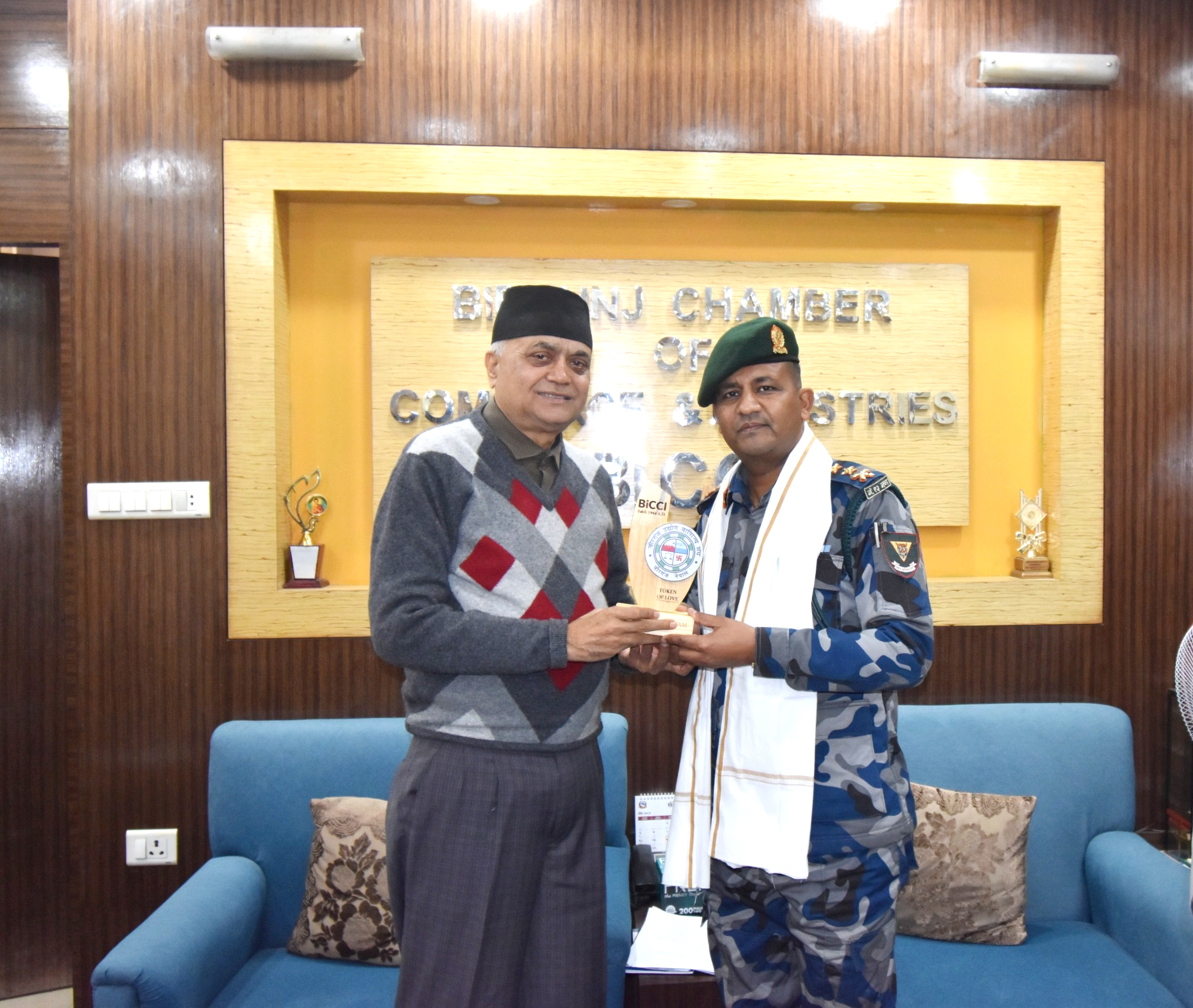 वीरगञ्ज उद्योग वाणिज्य सङ्घका अध्यक्ष श्री हरिप्रसाद गौतमज्यू तथा सङ्घका पदाधिकारीज्यूहरूले वीरगञ्ज महानगरपालिकालाई टेबल र कुर्सी हस्तान्तरण गर्नुभयो।उक्त कार्यक्रममा वीरगञ्ज महानगरपालिकाका नगर प्रमुख श्री राजेशमान सिंह श्रेष्ठज्यू, प्रमुख प्रशासकीय अधिकृत श्री अरबिन्दलाल कर्णज्यू, सङ्घका उपाध्यक्ष श्री आशिषकुमार लाठज्यू, महासचिव श्री शिवजीप्रसाद कलवारज्यू, सह–सचिव श्री अनुप अग्रवालज्यू तथा प्रशासकीय अधिकृत श्री मनोज उपाध्यायज्यूको सम्माननीय उपस्थिति रहेको थियो। Read More