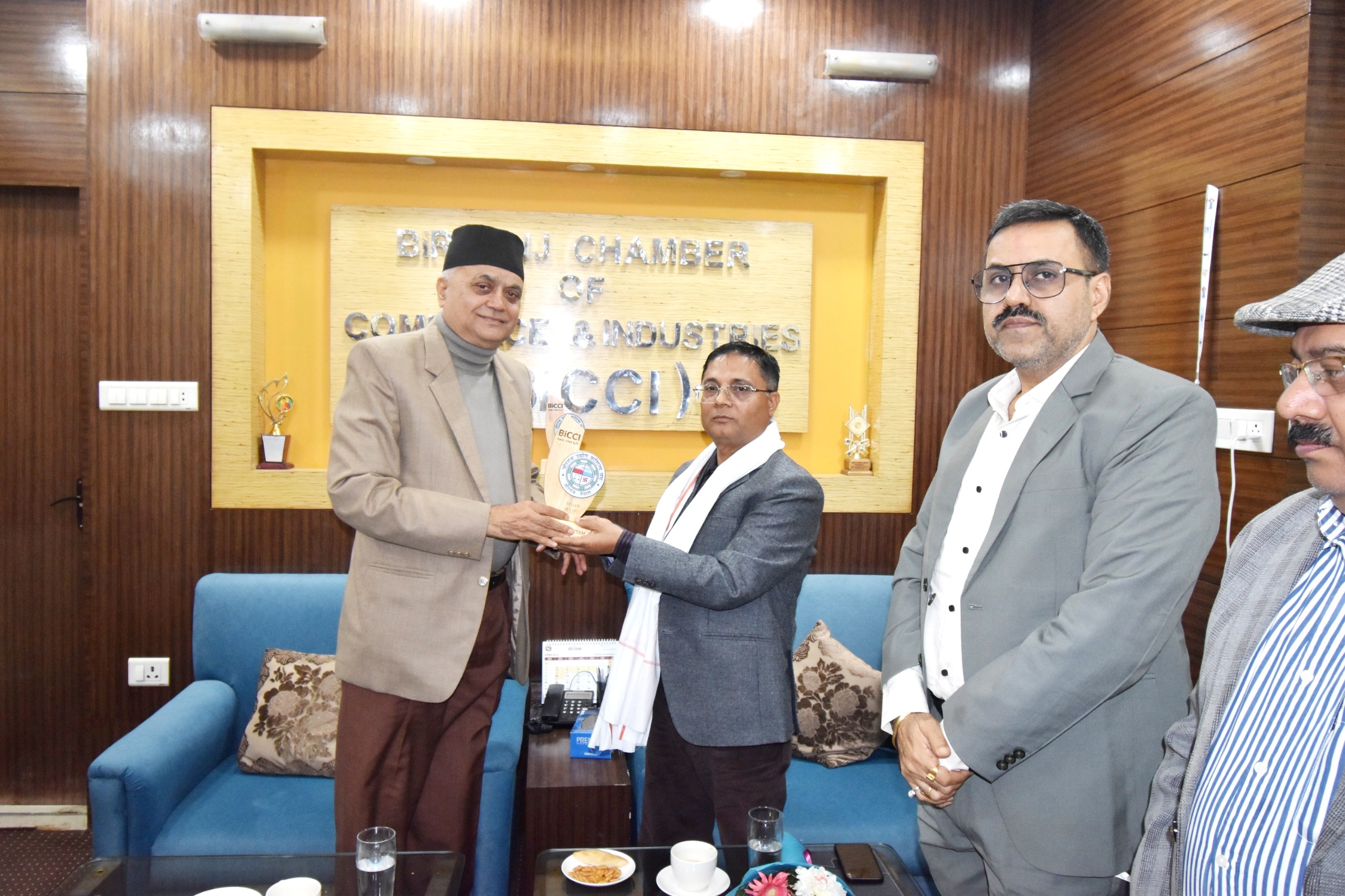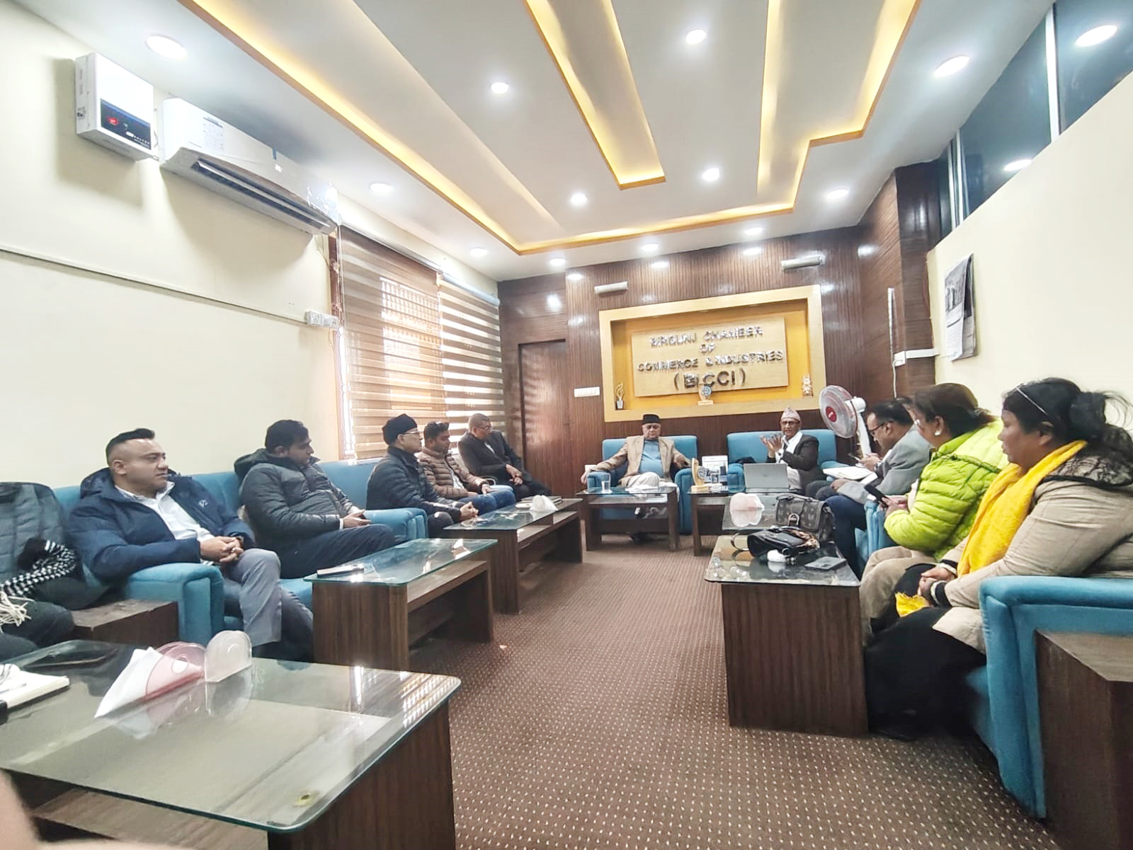 बीरगञ्ज उद्योग वाणिज्य सङ्घका अध्यक्ष श्री हरिप्रसाद गौतमज्यूको अध्यक्षतामा सङ्घको सभाहलमा नेपाल विद्युत प्राधिकरण, बीरगञ्जका नवनियुक्त कार्यालय प्रमुख श्री विजय महत्तोज्यूसँग विद्युत आपूर्तिमा देखिएका समस्या तथा तिनको समाधानका विषयमा छलफल कार्यक्रम सम्पन्न भयो। उक्त छलफल कार्यक्रममा सङ्घका वरिष्ठ उपाध्यक्ष श्री माधव राजपालज्यू, उपाध्यक्ष श्री आशिष कुमार लाठज्यू, महासचिव श्री शिवजीप्रसाद साहज्यू, सचिव श्री सुशान्त चाचन्‌ज्यू तथा सहसचिवद्वय श्री नरेश कुमार टिवडेवालज्यू र श्री अनुप अग्रवालज्य Read More